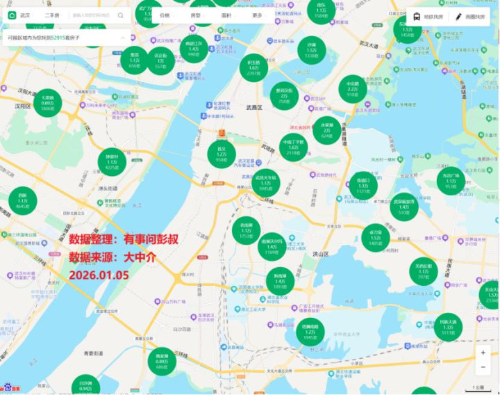 像是武汉楼市1月到4月初里面,武汉楼市的水果湖板块房价就从2万降至1.9万,降了1000元,武汉楼市的中北路板块房价从2.2万降至2.1万,降了1000元,武汉楼市武昌火车站板块房价从1.1万降至1万了。