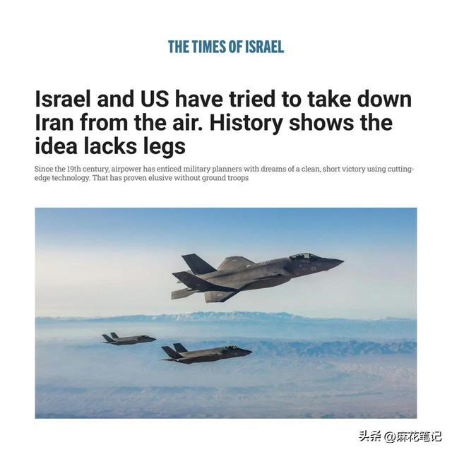 3.《以色列时报》:以色列和美国曾试图通过空中力量迫使伊朗屈服,但历史表明这种做法行不通。“空中力量”固然重要,但并非解决之道。认为仅凭空中力量就能击败伊朗这样的国家,与其说是切实可行的计划,不如说是一厢情愿的想法。